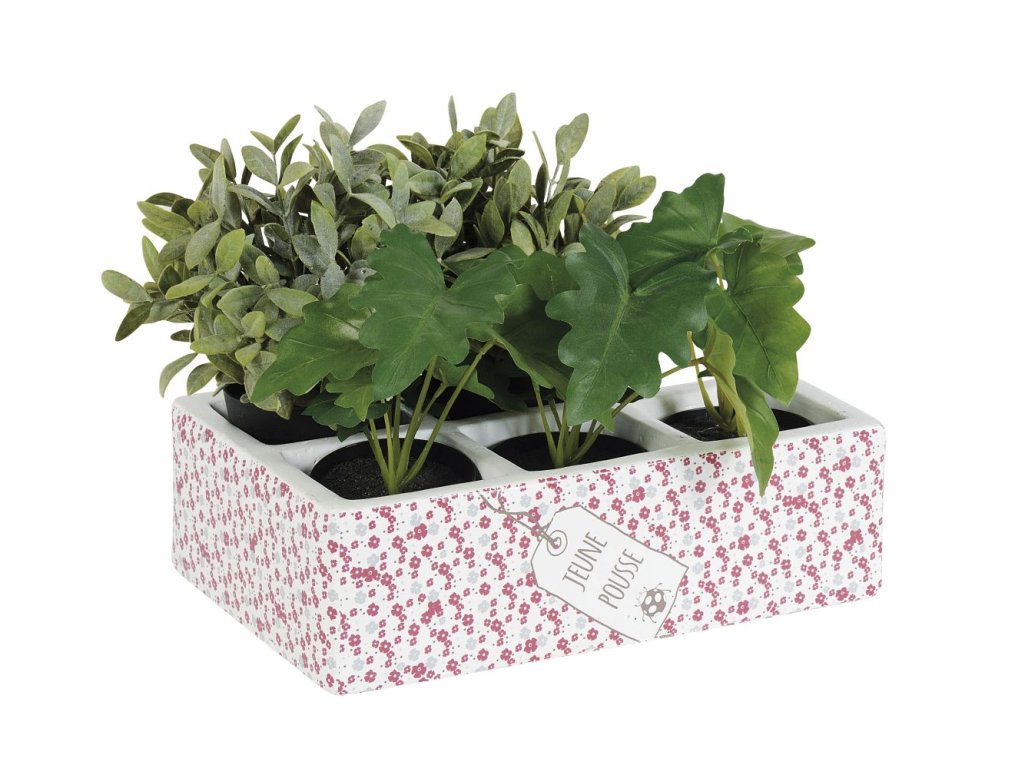 Květináč z terracoty s šesti pozicemi, strakatý potisk.